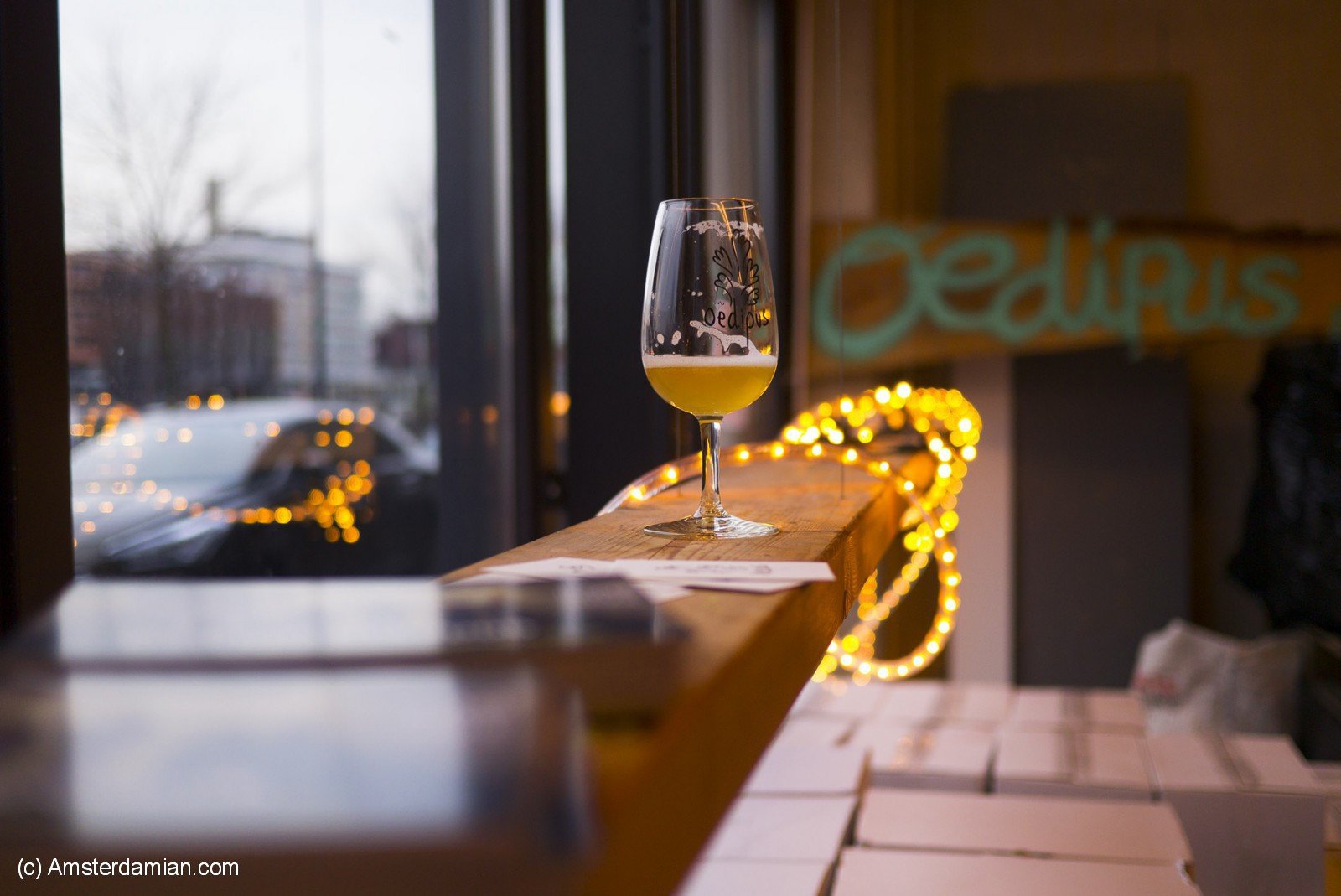 The first beer, while admiring the view over Westerdok