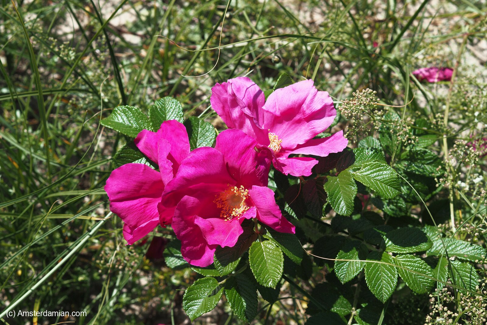 I love very much the sea thistle with its spiky leaves and purple flowers, the wild roses and the sea buckthorn growing abundantly (I know where to do my foraging this autumn!) and all the other flowers whose names I don’t know. There were bumblebees and butterflies around, which made me happy, knowing that they have a place to go to find good food. And here’s a little gallery of my findings: