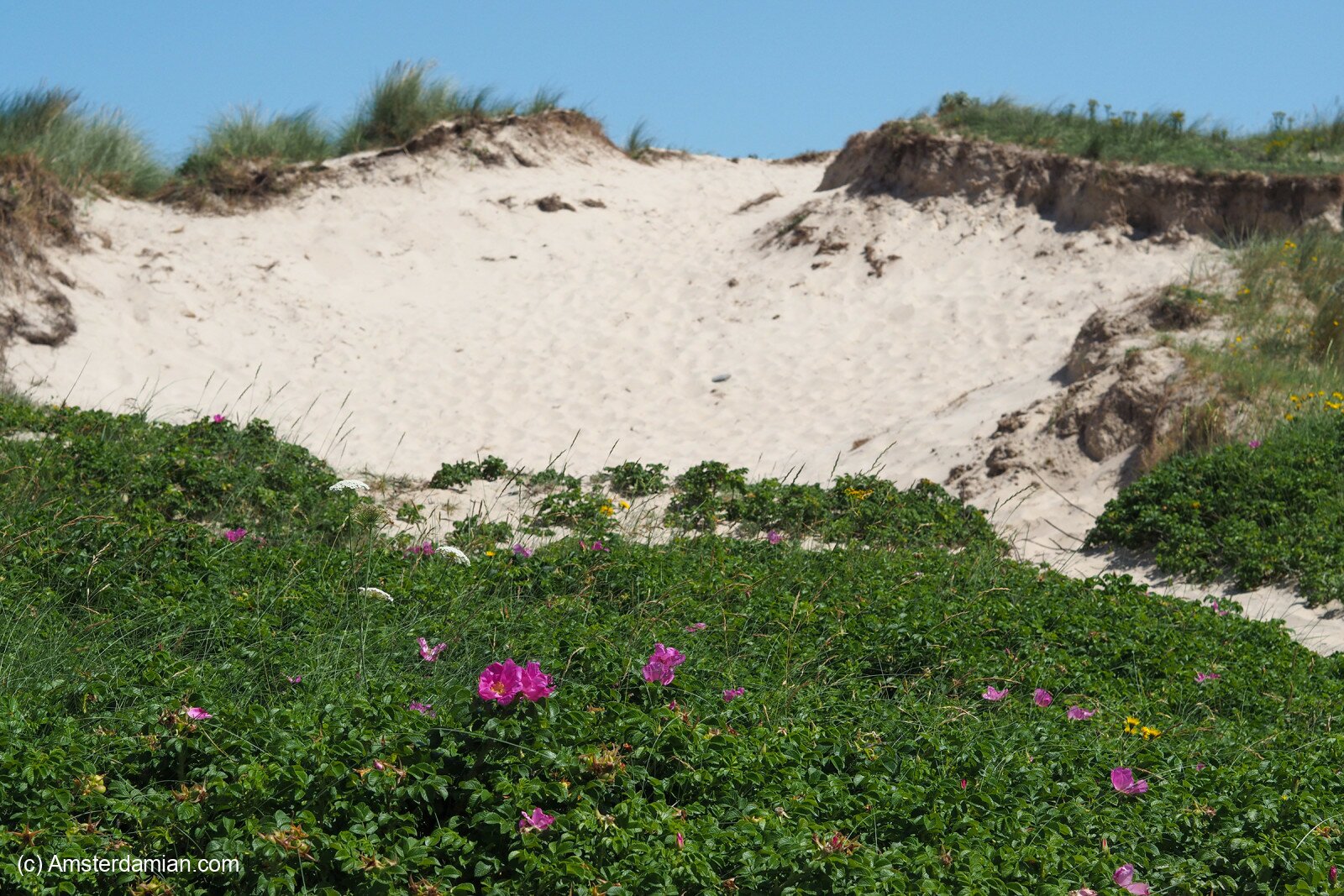 This summer I was set to look for the flowers growing on the dunes, and there I was, at Egmond aan Zee, under the scorching sun, feet burned by the hot sand, carrying my camera to photograph little flowers. It’s not easy to be a nature photographer! But every trip ended with a bath in the sea (or at least my legs in the cold water), so it was worth it.