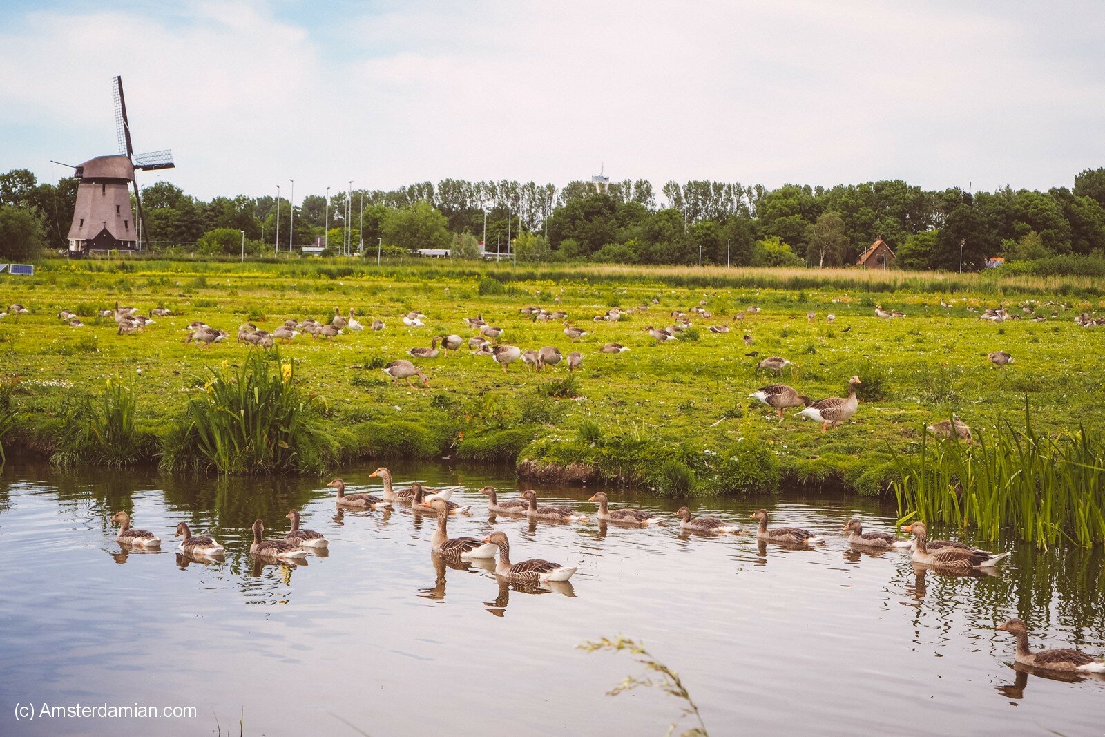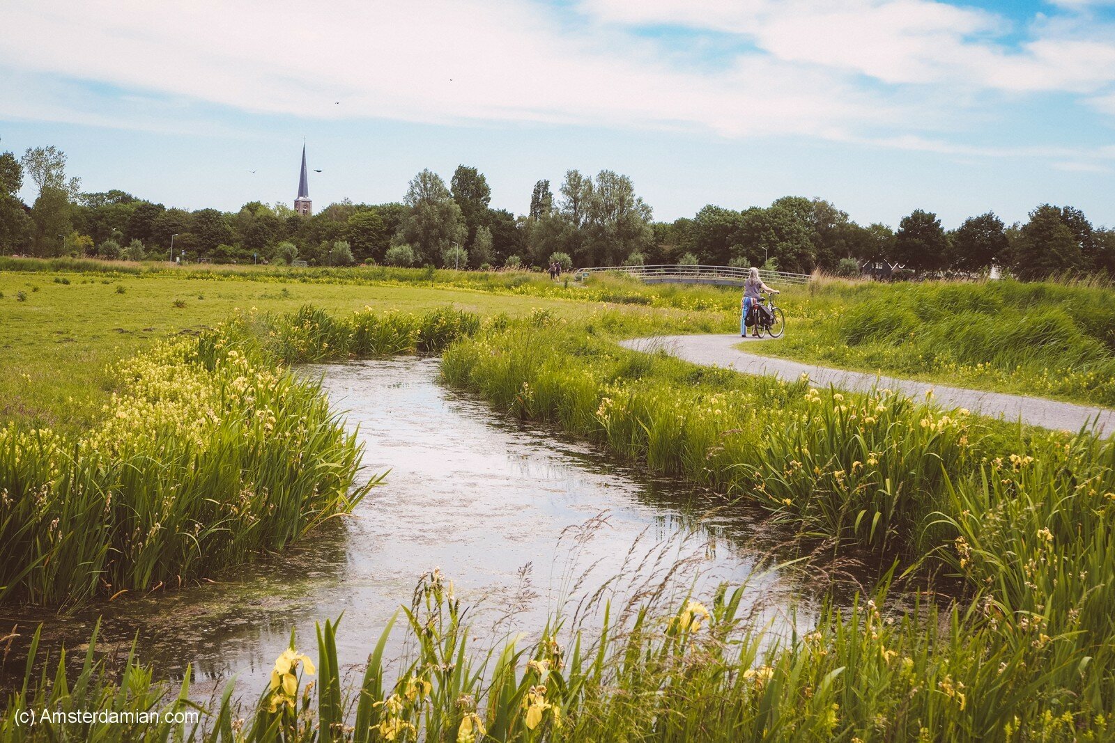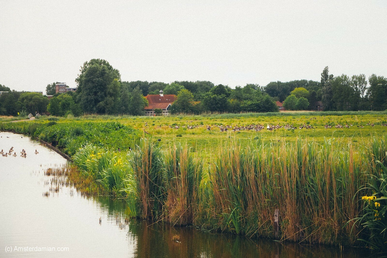 I like to visit Oudorperhout when I’m too tired for a long cycling session; I would have a walk around the area, pay attention to all the new blooming flowers, watch the geese and sometimes walk till the neighbouring village of Oudorp. At the moment, the lakes are covered in water lilies and the canals are bordered by yellow irises; the swans and their cygnets complete the perfect picture. It’s also nice to follow the changes in this area throughout the seasons, to se how the flora and fauna change over the months. Sunrise is a beautiful moment to be there, the soft light falling on wild flowers and the canals, the birds waking up and starting making noise. We are fortunate to have this park so close to the city, just a short walk away, offering a serene escape into nature.